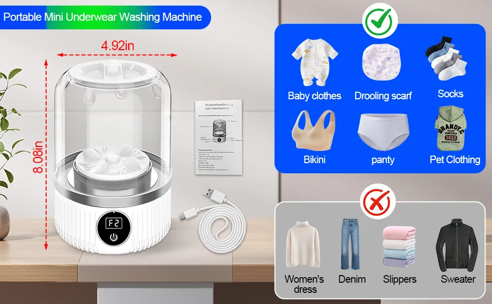 - Ideal for Small Item Laundry: Beyond being an excellent underwear washer, it's perfect for cleaning socks, baby clothes, saliva towels, and makeup brushes.